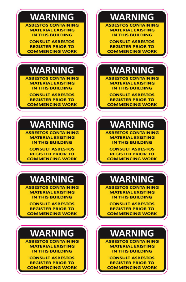 • Pack of asbestos warning stickers
