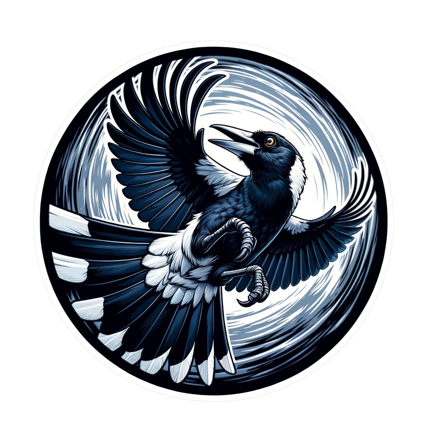 flying swooping Magpie vehicle sticker decal car truck trailer 2 motorhome camper It's the perfect way to show off your love for birds (and your love for puns). This swooping magpie decal adds a touch of whimsy to any vehicle, making your travels more fun and memorable. Plus, with easy application and durable material, you can take this decal on all your adventures without worry. Share the joy and personality of the swooping magpie with this unique vehicle sticker! (It'll make your fellow travelers squawk with envy.)