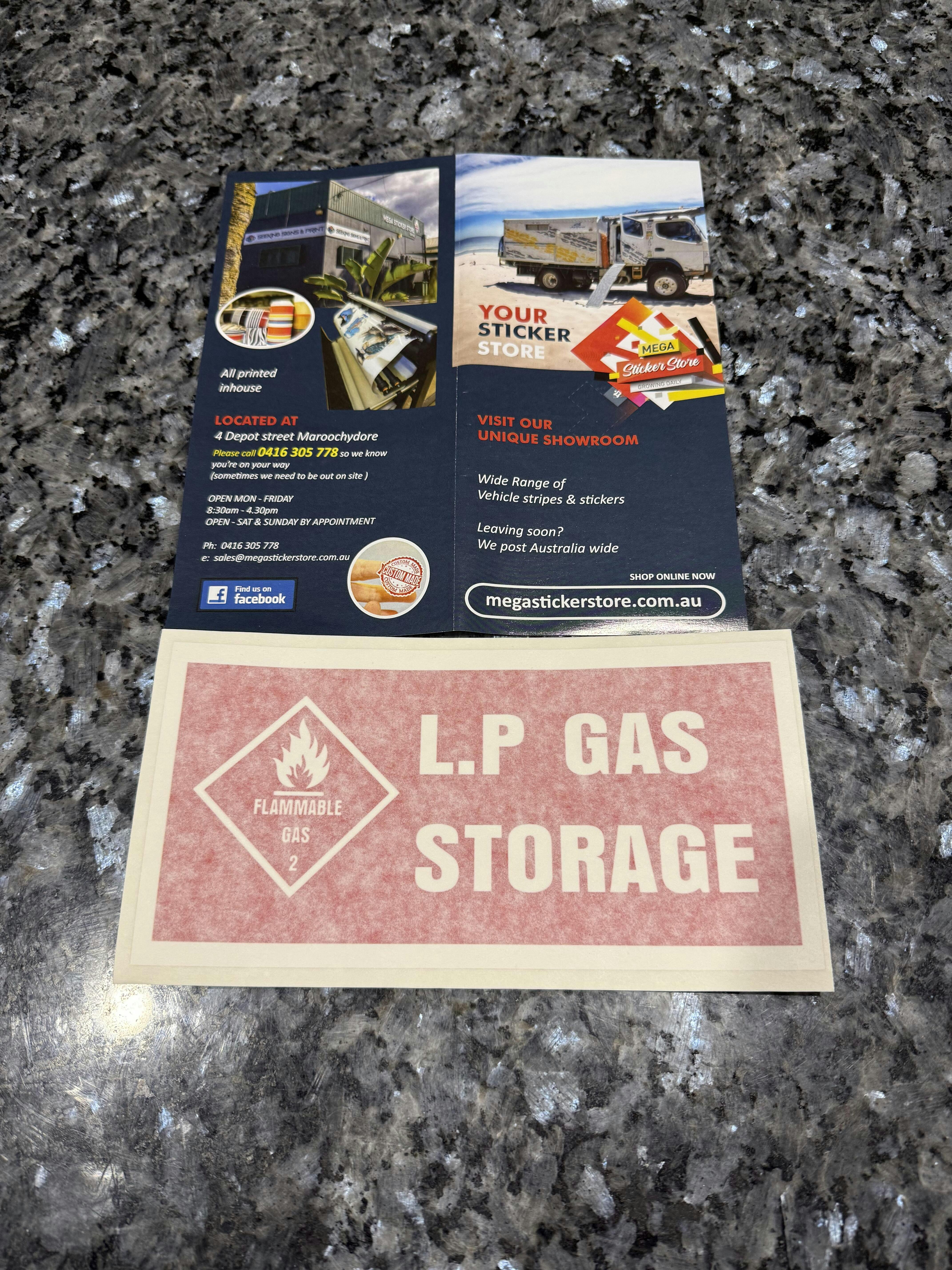 Place the storage sticker to the outside of the Caravan RV Motorhome where the LPG bottles are stored. Keep your family and loved ones safe with our high-quality LP gas storage warning sticker. Our durable decal, measuring 200mm x 100mm, is designed to be placed on the outside of your caravan, RV, or motorhome, serving as a constant reminder to keep the LPG bottles safely stored. Don't take any chances when it comes to gas safety - choose our trusted sticker today!