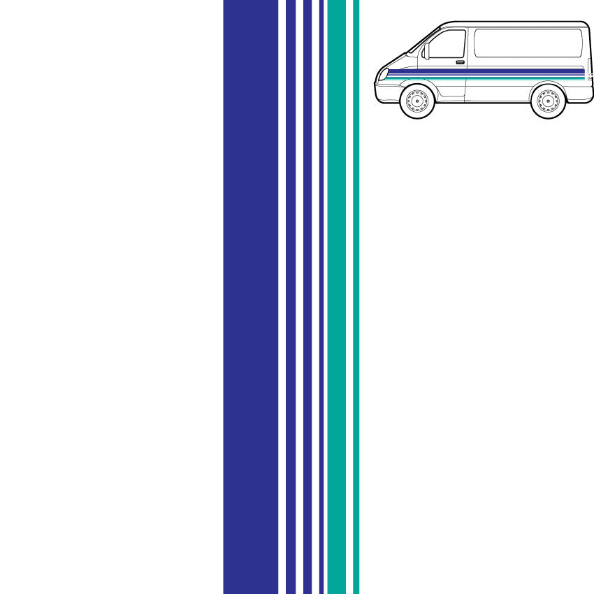 Transform your van with our Side Stripe Retro Style Pinstripe Vinyl Sticker Decal. This teal and blue pinstripe, with a white stripe in between, is perfect for adding a classic and stylish look to your vehicle. Made from high-quality vinyl with a gloss overlaminate, this decal offers extra UV protection and durability.