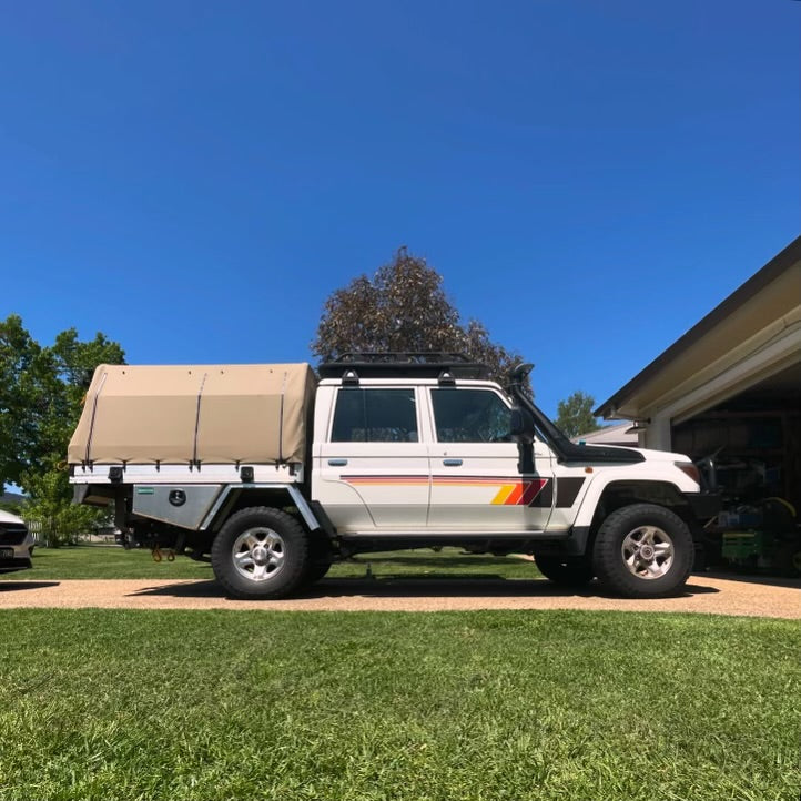 vehicle Side stripes retro colours suitable for Landcruiser jeep van motorhome truck pinstripes Can be customized to suit your requirements, we can change colours and sizes message us for a quote if you need a custom decal sales@megastickerstore.com.au Stand out from the rest with our Side stripes retro colours for your Landcruiser jeep van motorhome truck! Made with high-quality materials, our customizable stripes can be tailored to your exact preferences. Impress onlookers with a unique and eye-catching decal that reflects your personal style. Contact us for a quote and elevate your vehicle's appearance today!